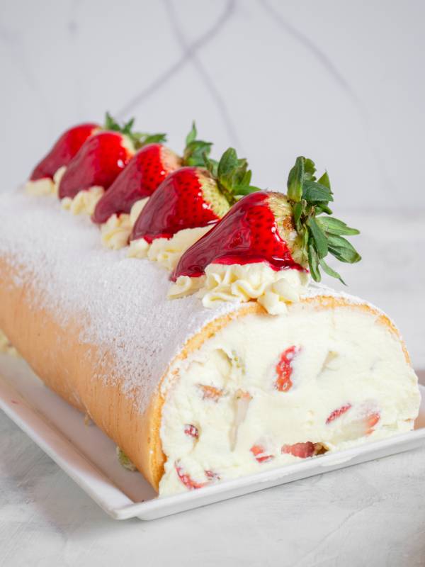 Esponjoso Bizcochuelo de vainilla relleno de fresas con crema